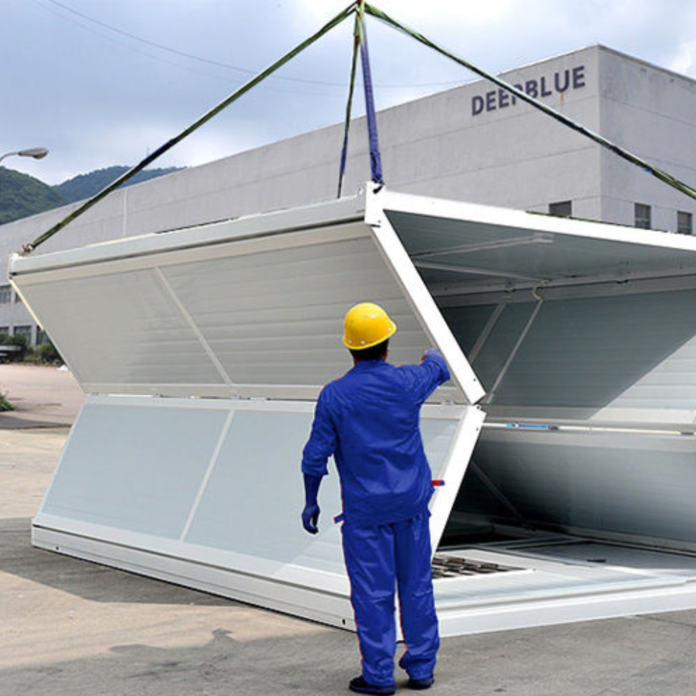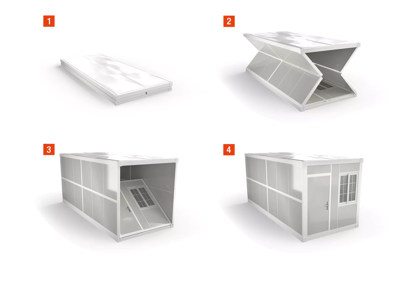 Each unit is delivered as a foldable structure, significantly reducing transportation volume and installation time. Unlike traditional kits, foldable units are designed for lightning-fast setup — installation takes just 10 minutes using a crane or forklift.